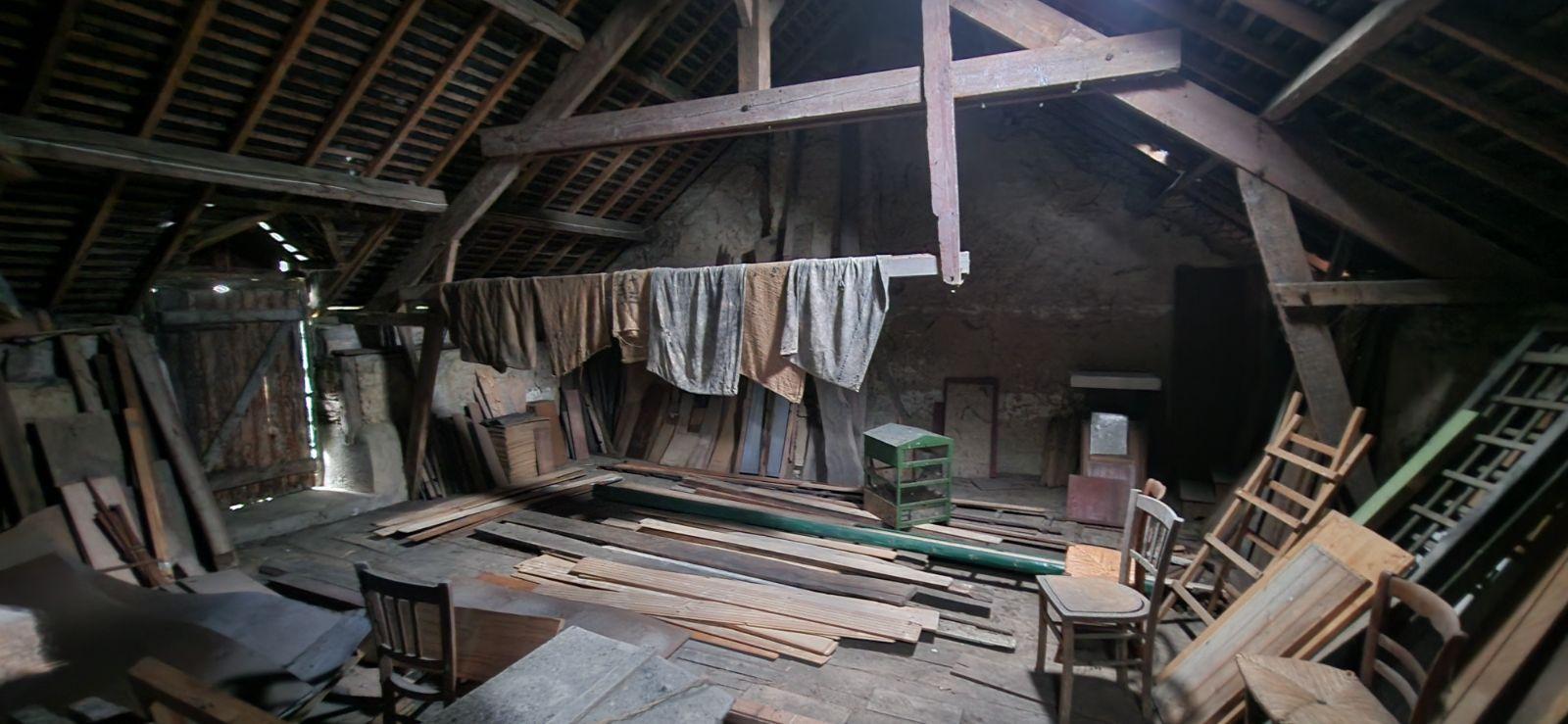 Elle est composée d’une pièce à vivre avec cheminée ouverte et coin cuisine, d’une chambre, d’une salle d’eau, d’un dégagement et d’un wc, d’un atelier avec un vaste grenier au dessus et d’une autre pièce à vivre.